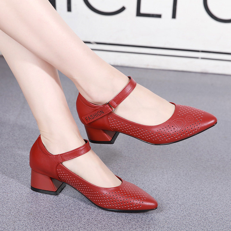 Summer Square Dance Shoes Dancing Shoes Women Adult with Soft Bottom Social Dance Shoes Genuine Leather Red Dancing Shoes Breathable