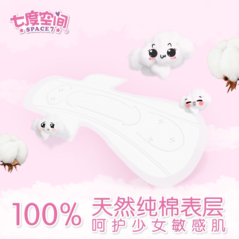 Seven-degree space sanitary cotton lengthened pure cotton night with 275mm large fan tail anti-side leakage aunt towel thin combination