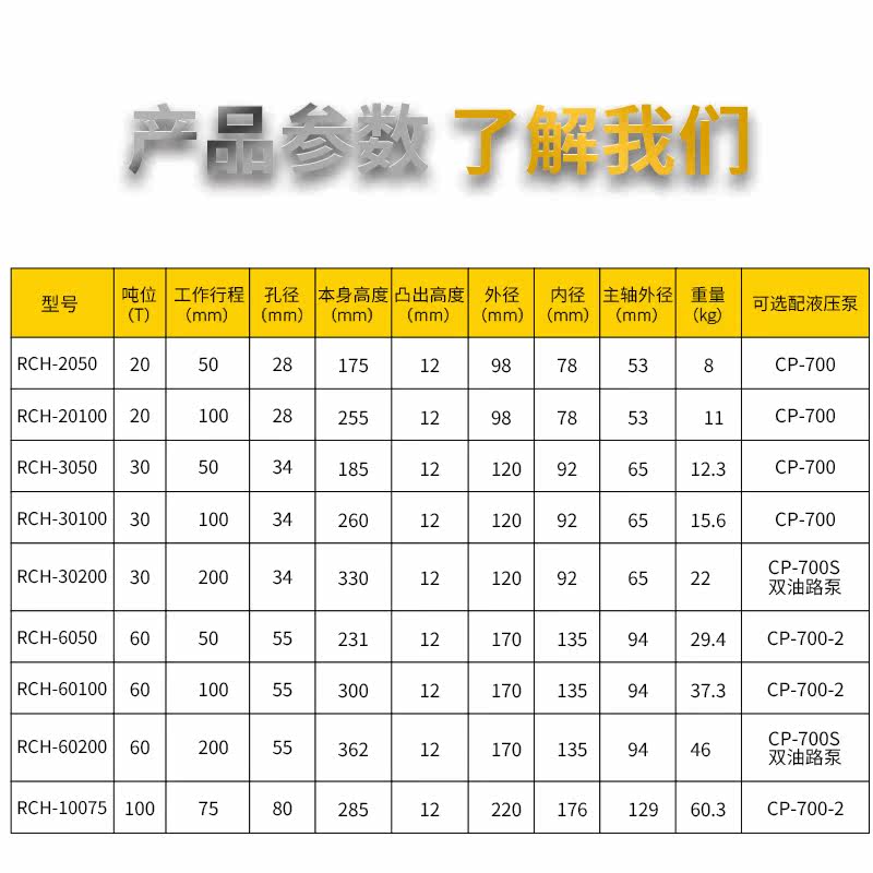 RCH-30100 hollow hydraulic multipurpose jack oil pressure 30 ton 100mm trip with pump country