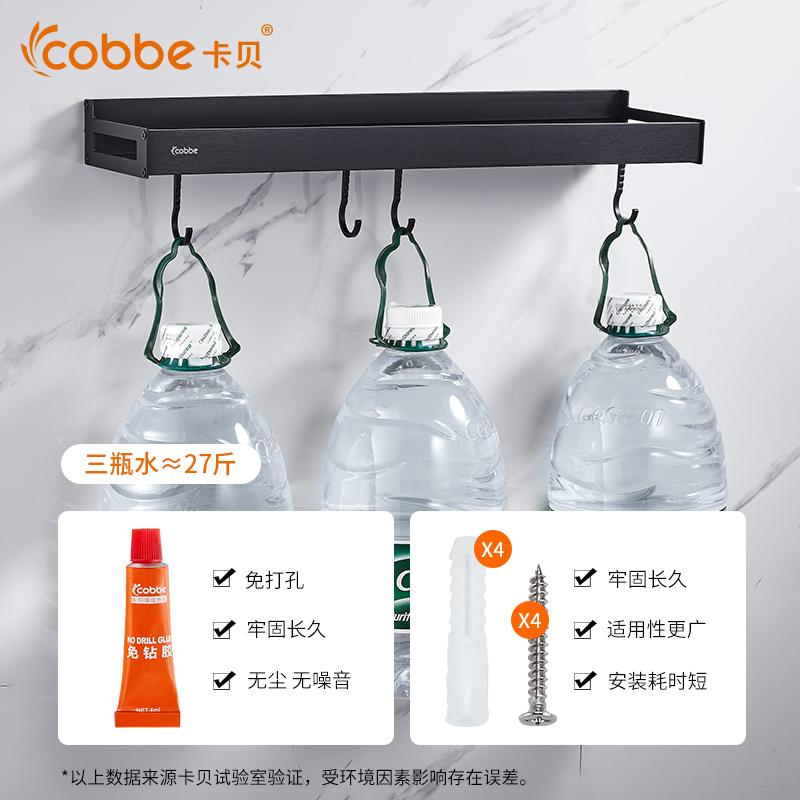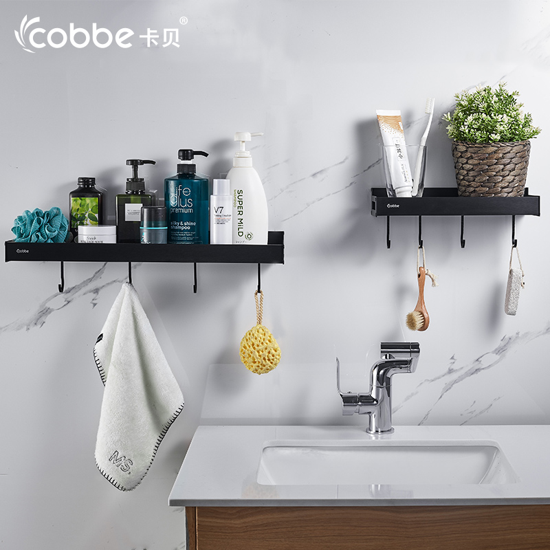 Space aluminum kitchen shelf wall hanging free punched wall conditioner shelf collection frame black