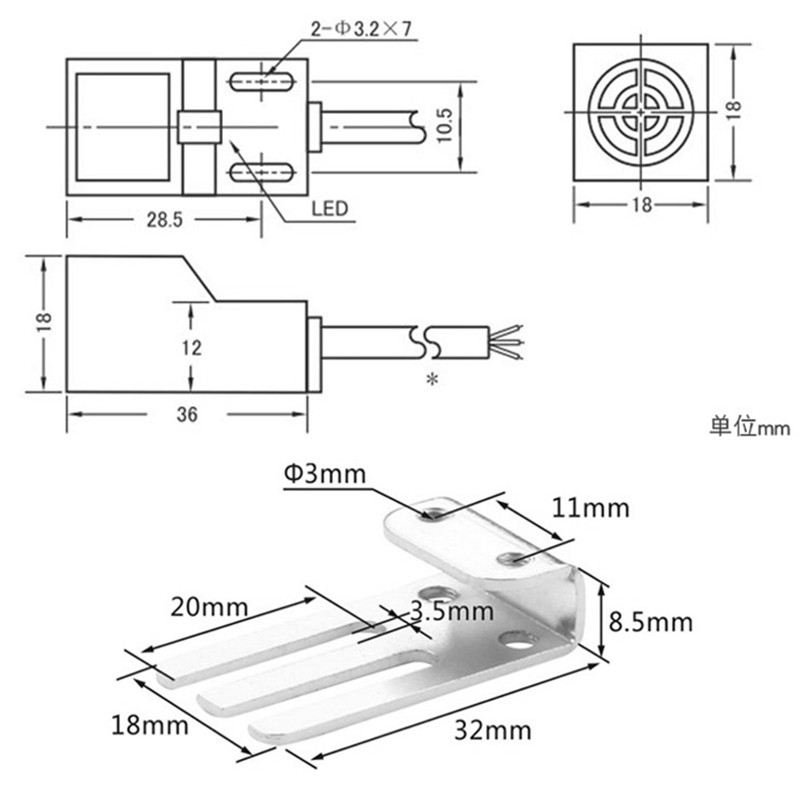 Original fit square proximity switch SN04-N NPN third-line proximity switch normally open metal inductive switch SN04-P