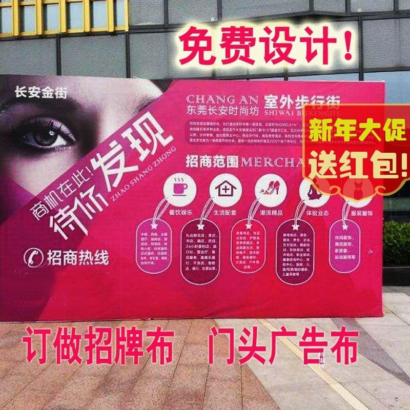 Facade shop advertising signboard production door head display card waterproof inkjet custom hanging plastic cloth custom