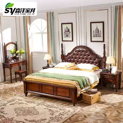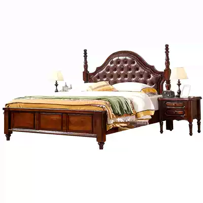 1 8 m American country Roman column bedside Brown soft foreskin air drawer high box old man oak solid wood bed