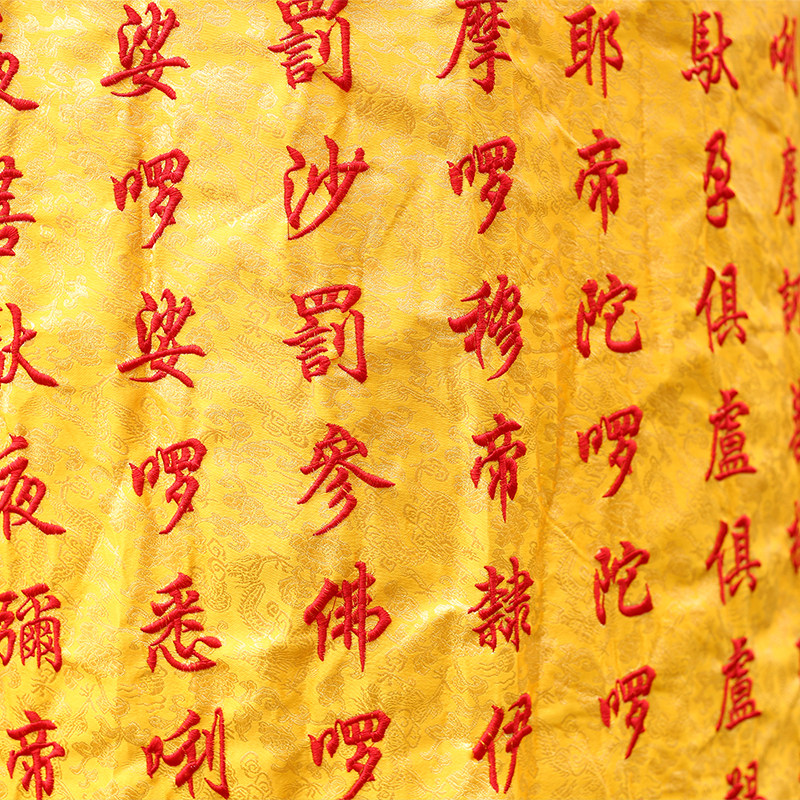 Customized Buddha hall embroidery Buddha light shining lotus sutra round house flag heart sutra great compassion mantra flag treasure cover canopy Shurangama mantra