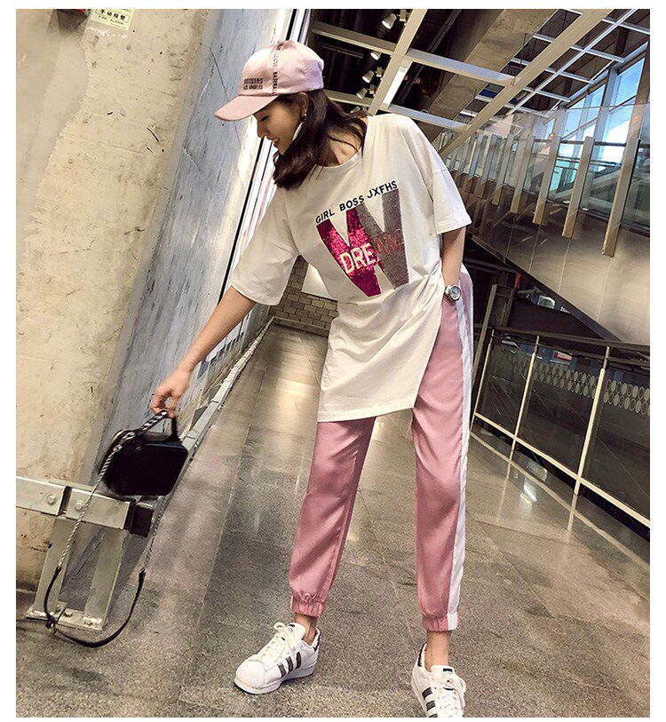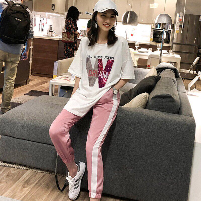Tide brand 2021 loose half sleeve pants bf wind cotton set female summer new Korean fashion students two-piece set