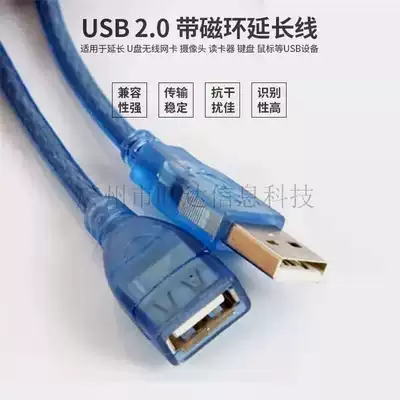 USB2 0 extension line transparent blue male to female 1 5 3 5 10 M data signal line computer with shielded magnetic ring
