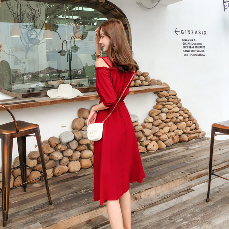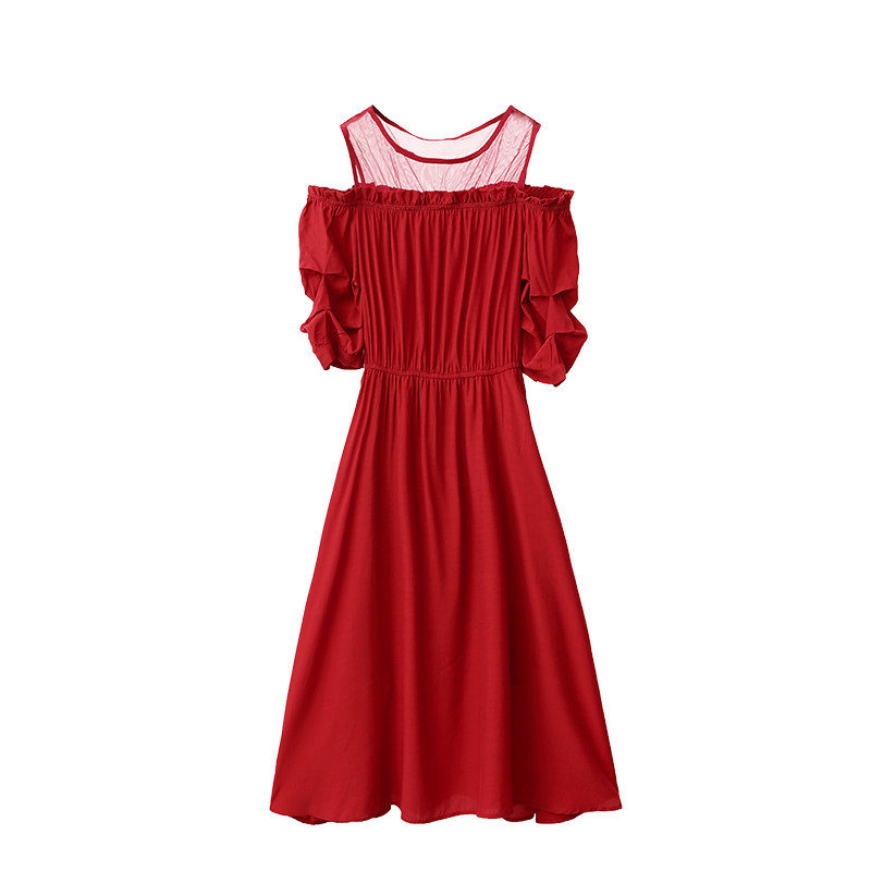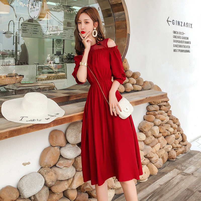 2022 new royal sister light cooked style French one-shoulder chiffon slim dress summer tea break bellflower skirt