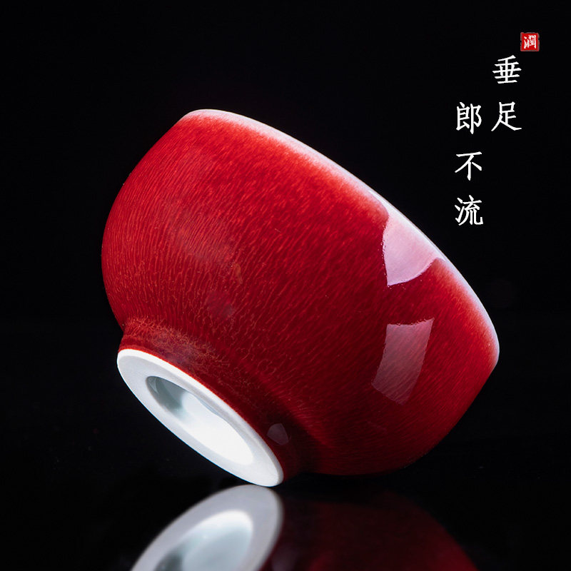 Juncuitang red glazed tea cup Rohan Cup Jingdezhen All handmade ceramic tea set Master's cup of tea drinking cup Single cup-Taobao