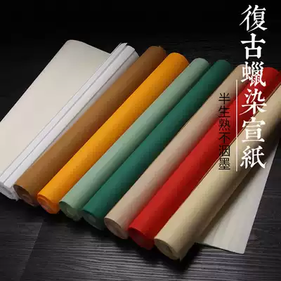 Good product Xuan batik rice paper antique four-foot six-foot pair of batik paper rice paper half-baked rice paper small Kai brush calligraphy creation work paper participating in the National Exhibition special batik rice paper
