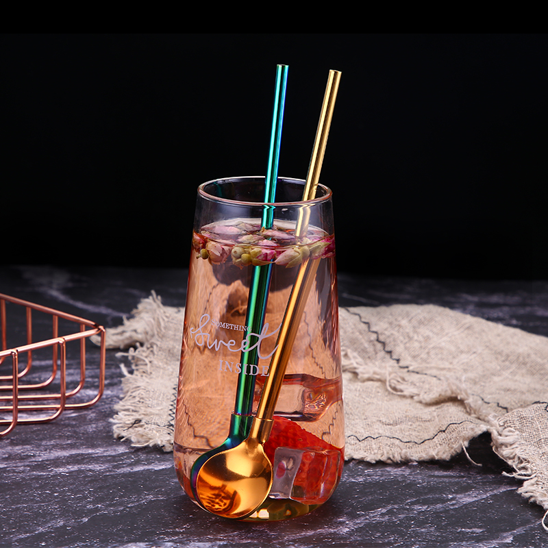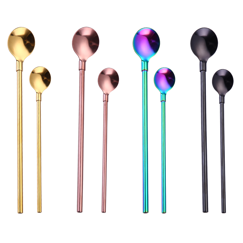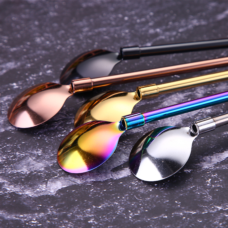 Stainless steel color straw spoon golden straw spoon Colorful Straw Spoon Rose Gold Straw Spoon