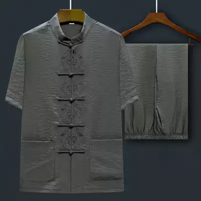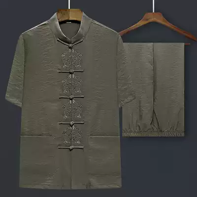 2020 new middle-aged and elderly Tang suit men's short sleeve set Chinese Hanfu father dress Chinese style retro summer dress