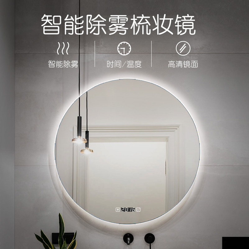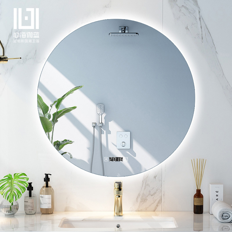 Heart Hyga Blue Makeup Room Intelligent Mirror Hanging Wall Bathroom Mirror Makeup Mirror wall-mounted round mirror Anti-fog mirror hanging mirror