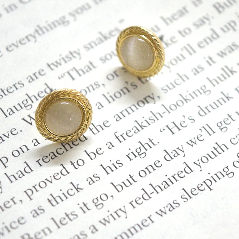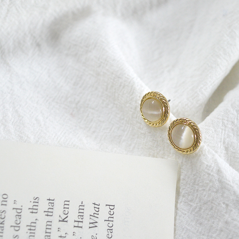 Minimalist Hong Kong style high-grade sense of small temperament round opal simple and exquisite earrings ear clip no ear hole female earrings