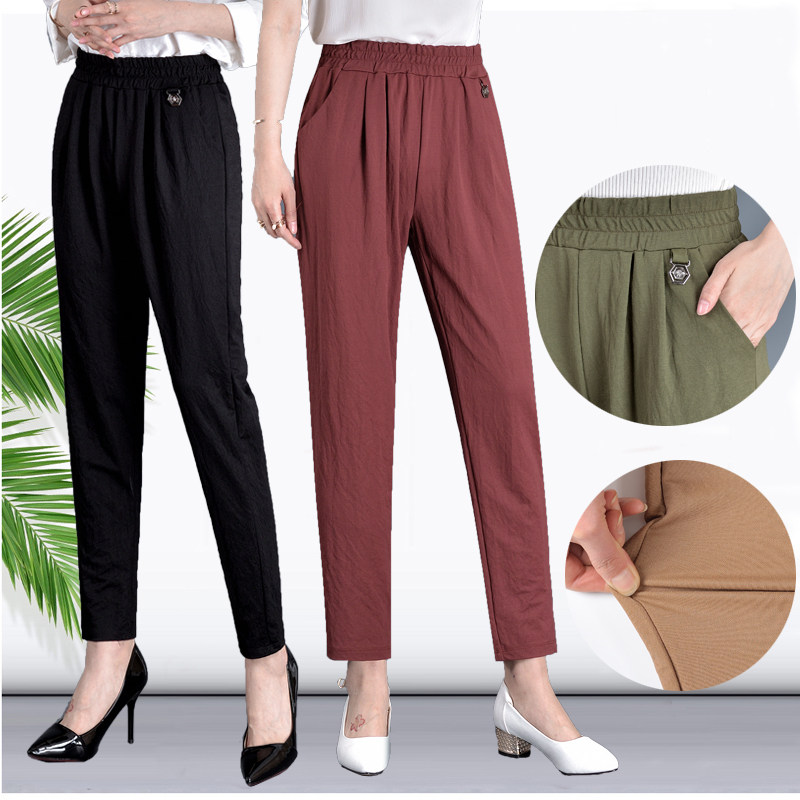Mom 90% Pants Woman Summer Thin tightness waist Hallen pants loose mid-aged girl pants large size mid-adult pants