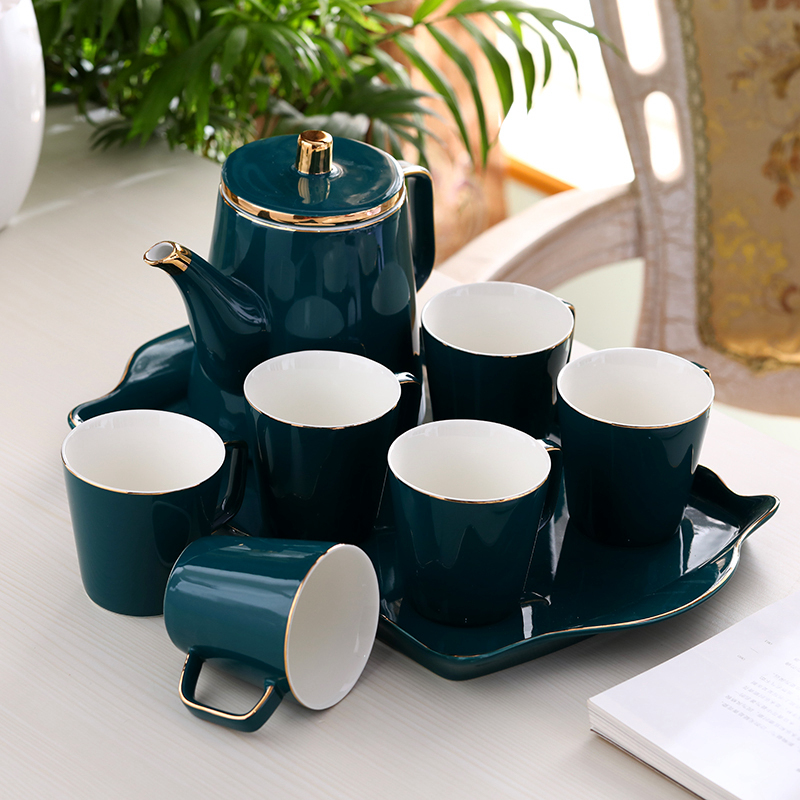 Eurostyle tea set home water cup cold water jug cold water pot ceramic cup water fitting heat resistant cup with matching tray living-room