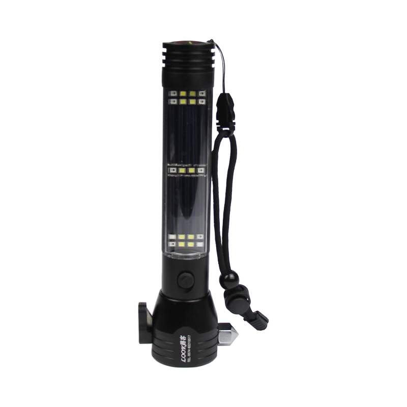Explosion-proof flashlight strong light LED charging multi-function emergency car window breaker flashlight warning sound escape hammer