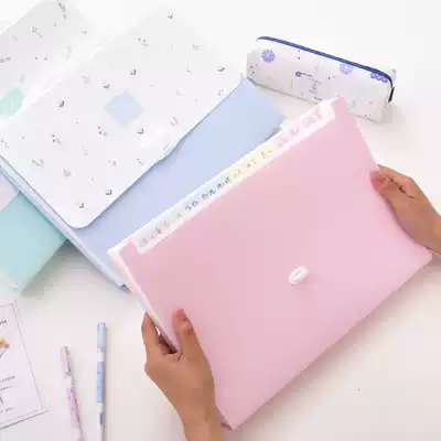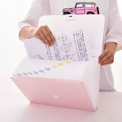 Deli multi-layer folder Student multi-card bag test paper storage bag Korean small fresh cute cartoon transparent insert classification data file storage box Finishing artifact A4 data book