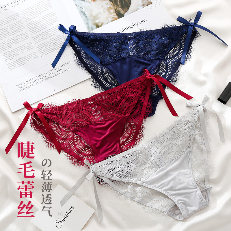 Sexy eyelashes lace women's underwear European and American girls transparent seamless waist hot cotton crotch women's triangle trousers