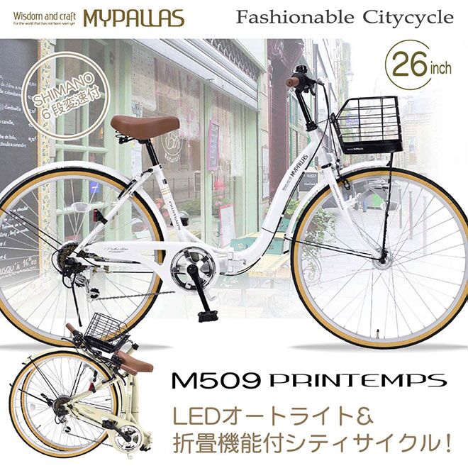 MYPALLAS 26 inch 6-speed folding bicycle Sanyo induction headlights brisk folding car Lady car