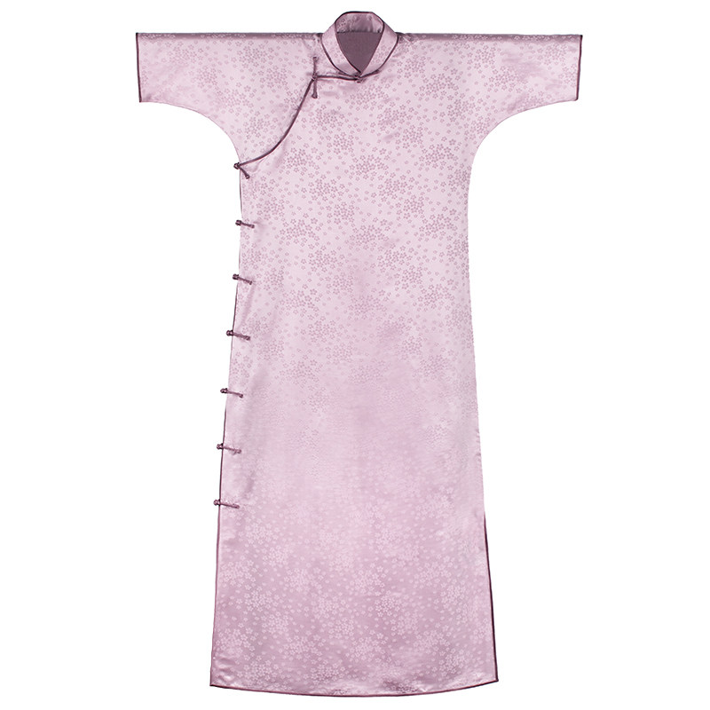 The Purple Rhombus -- spring and summer style silk cotton jacquard satin Chinese style retro country wind short sleeves without provincial disc buckle ancient French long qipao