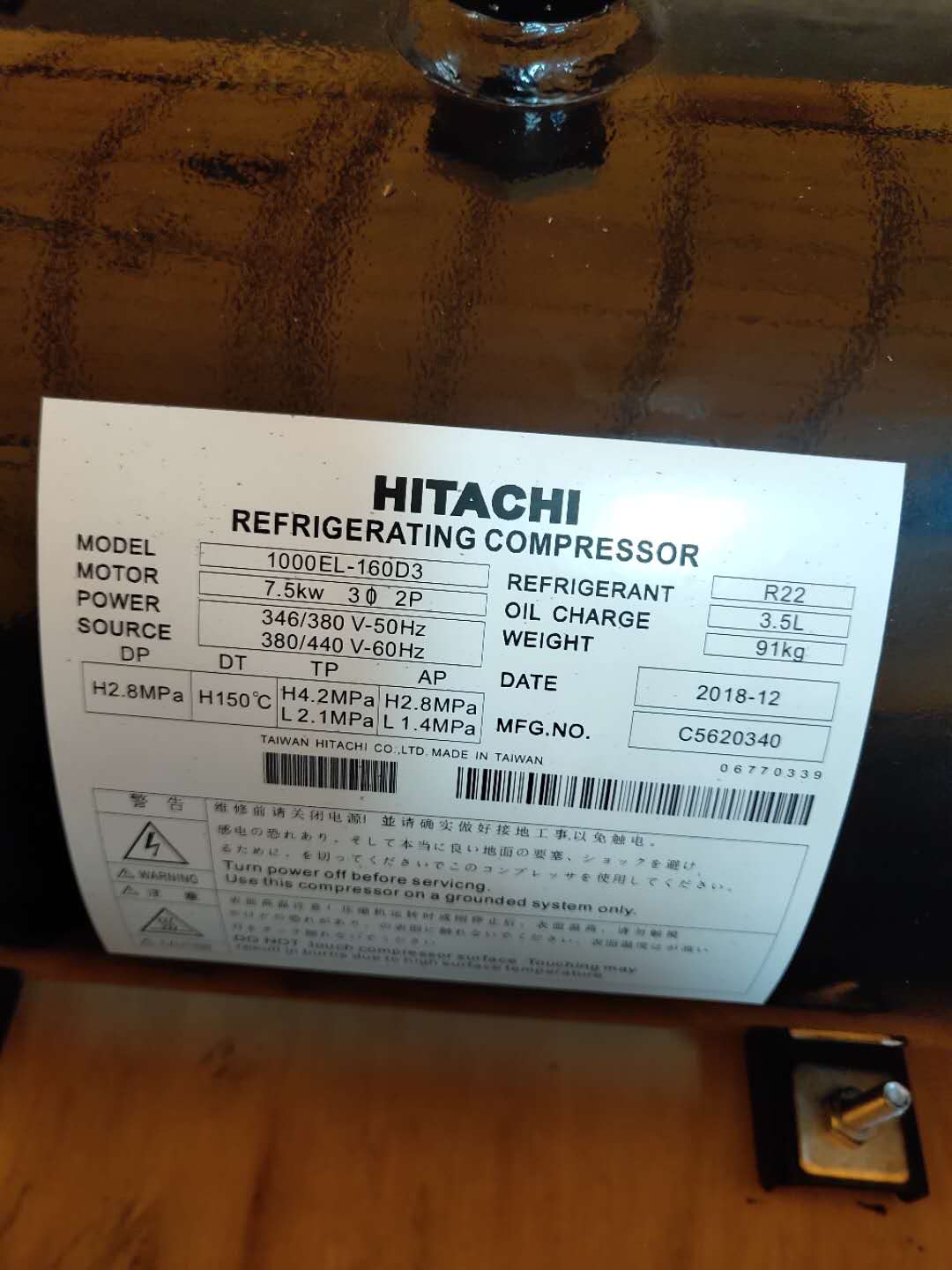 L800EL-144C3 FL1000EL-180C3 L1000EL-180C3 Hitachi Horizontal Compressor 10 horsepower