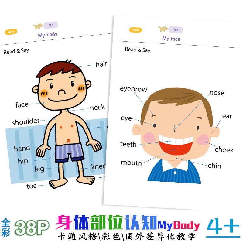 Kindergarten Baby Human Body Parts Cognition Children Characters Five Officers Know Cards Books English Enlightenment Teaching Aids