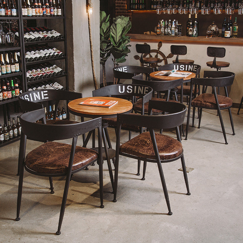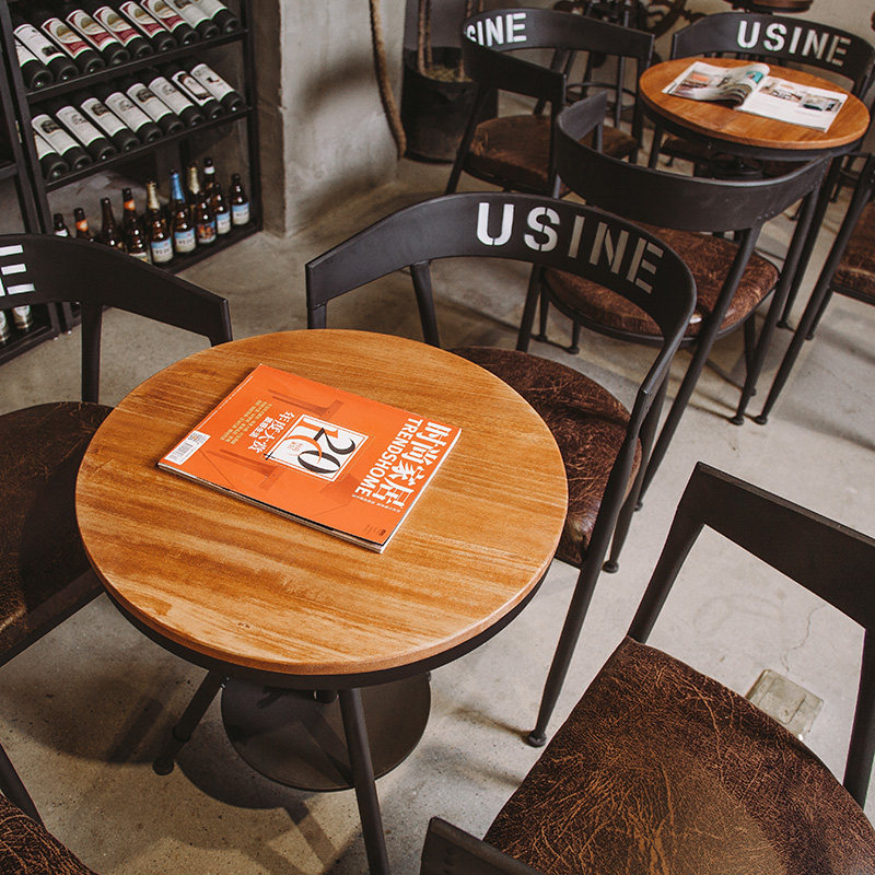 American wrought iron cafe restaurant retro small round table music dining bar dining room solid wood dining table chair backrest