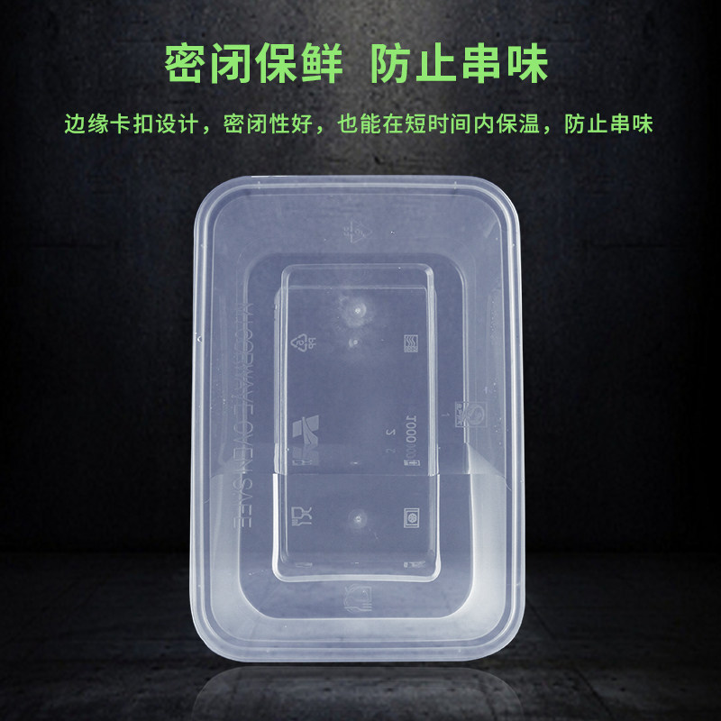 Li Bing disposable lunch box rectangular round 1000ML thickened plastic takeaway packaged transparent lunch box fast food bowl