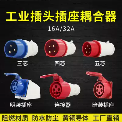 3-core 4-core 5-hole 16A 32A industrial plug socket connector set Three-phase male and female docking 220V 380V