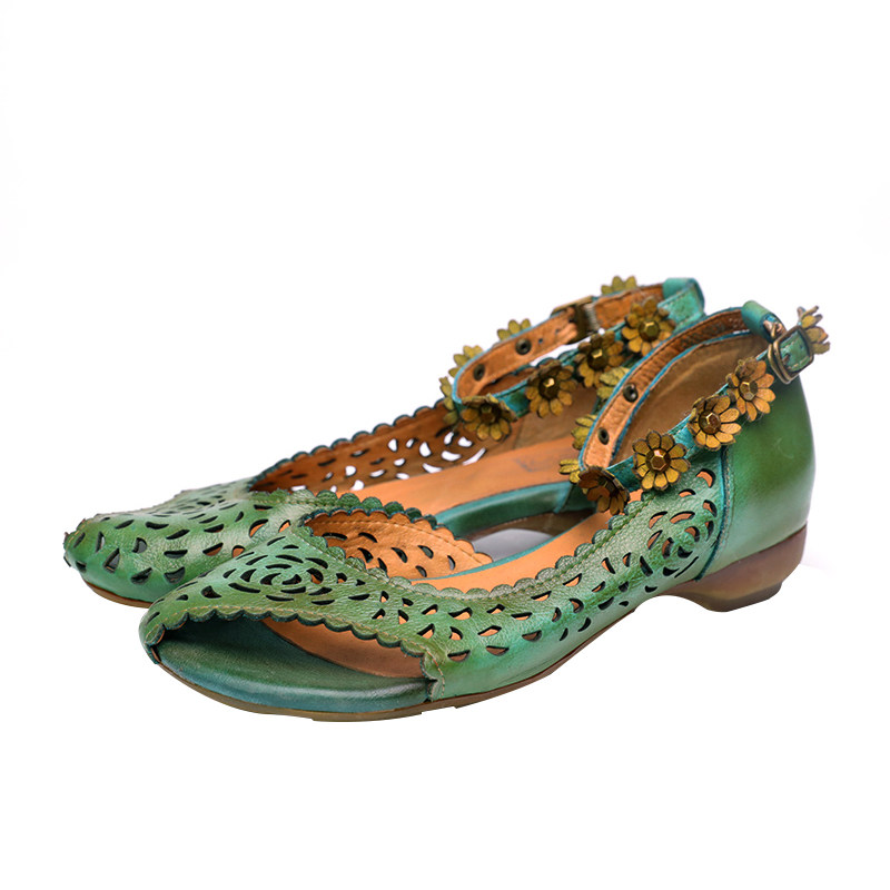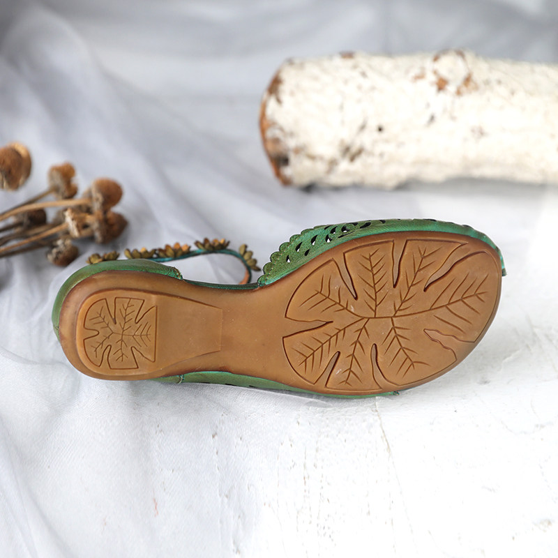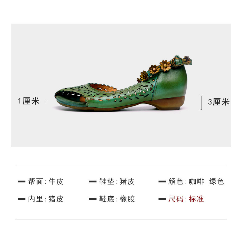 Detoxification House Flower shadow Owler leather flower slip leather sandals female retro soft sole shoes summer