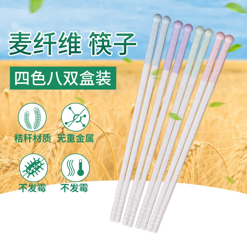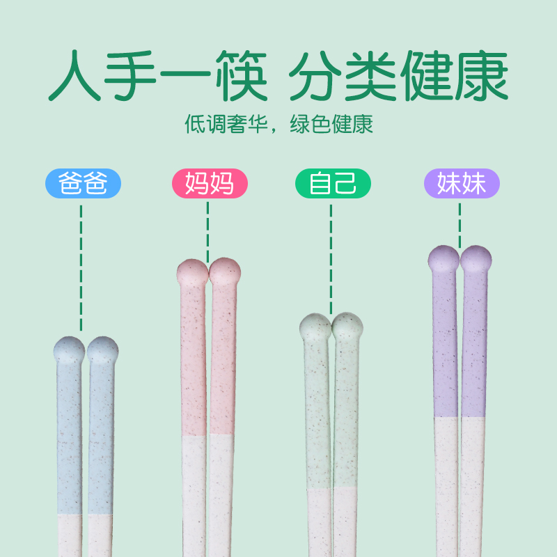 Household environmental protection candy color net red chopsticks Wheat tableware creative mildew family color classification Rice shell chopsticks