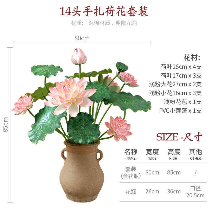 Original floral hand za-EVA simulation lotus lotus leaf suit Chinese style tea house dining room for Buddhist fake flower design decoration