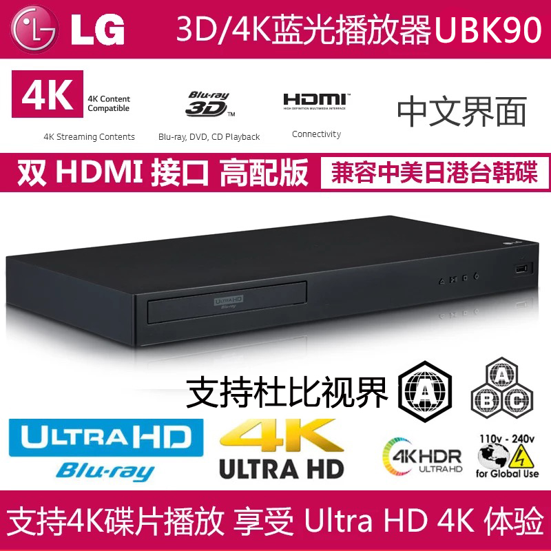 (2021 New) LG UBK90 True 4K Blu-ray Player UHD HDR 3D Blu-ray Player DVD Disc Player
