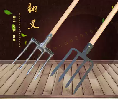 Soil stove large fork rake straw fork industry five-tooth nail rake gardening field large four-tooth turning ground steel fork peanut seedling