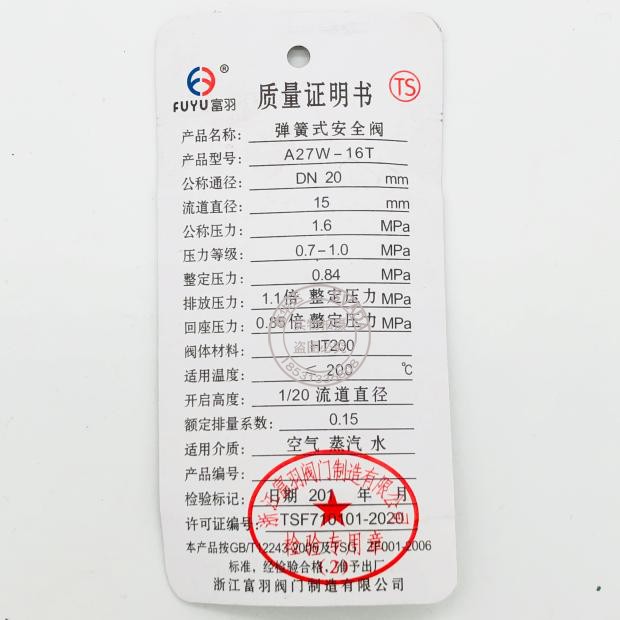 Fuyu a27w-10t spring safety valve a27w-16t gas storage tank safety pressure relief valve exhaust valve A27t