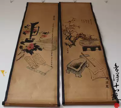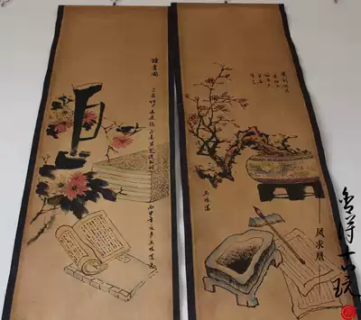 Antique old calligraphy and painting, Chinese painting, mural, Mo Mei Lan, bamboo and chrysanthemum, four screens, decorative painting, living room hanging painting, mounted