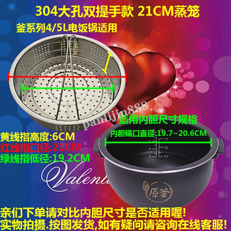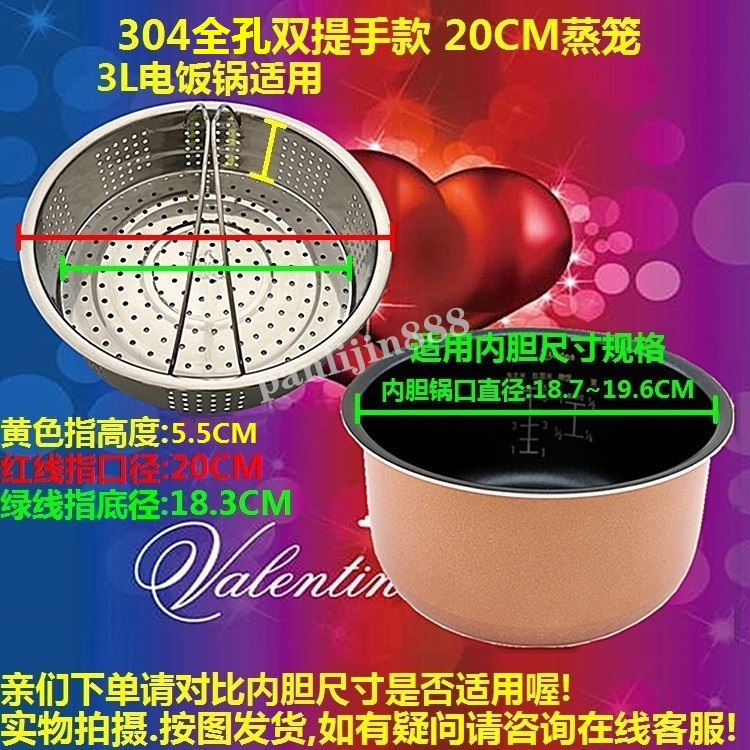 Rice cooker steamer 3 4 5L rice cooker steam food grade 304 stainless steam steam steam drawer 3 4 5 liters accessories