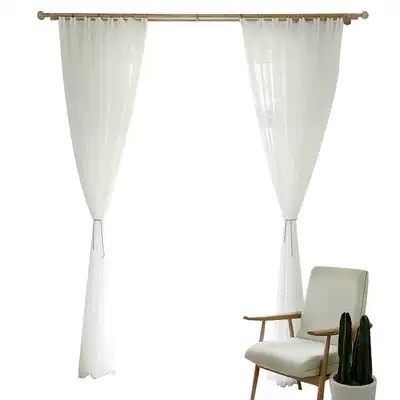 Simple modern Japanese curtains Nordic style fine linen yarn white solid color yarn curtain cotton and linen texture balcony living room