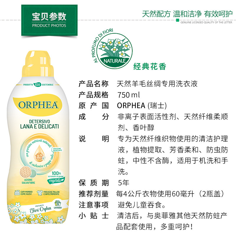 ORPHEA imported wool cashmere sweater down jacket silk special laundry detergent does not contain 750ml without fluorescent agent