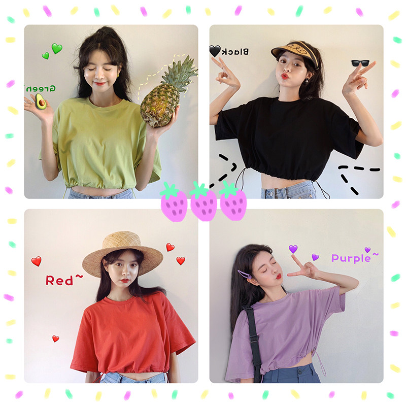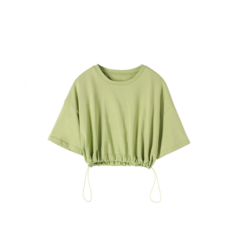 Fan Zhiqiao Avocado green umbilical t-shirt women with high-waisted pants drawstring short-sleeved Hyuna wind short top ins tide