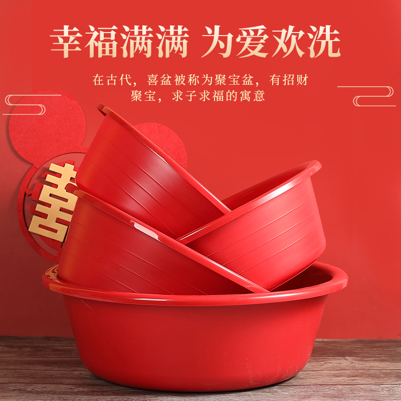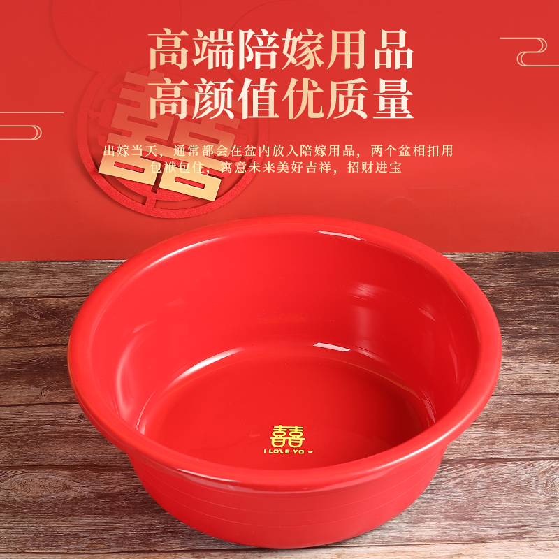 Bride dowry red basin hi basin washbasin thickened wedding laundry basin round plastic basin large bath basin