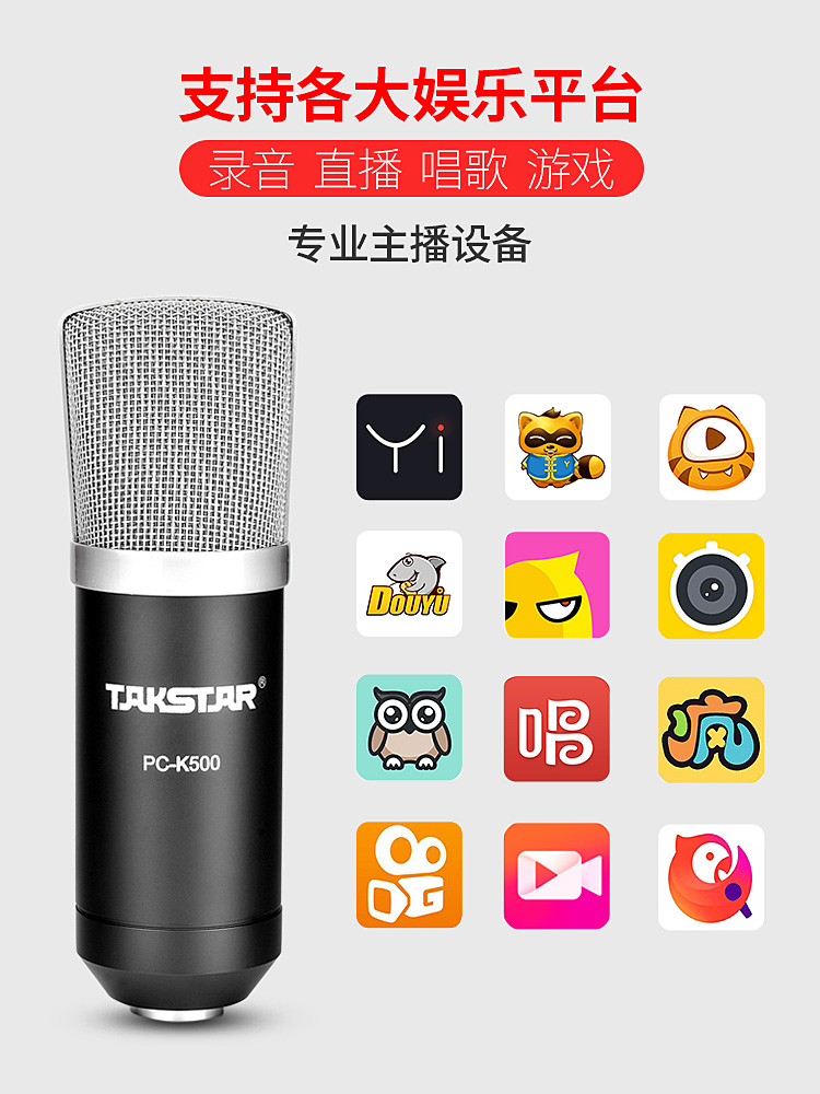 Takstar wins PC-K500 condenser microphone recording simple version network K song sound card set professional live broadcast equipment full set of net red teacher anchor live broadcast special microphone