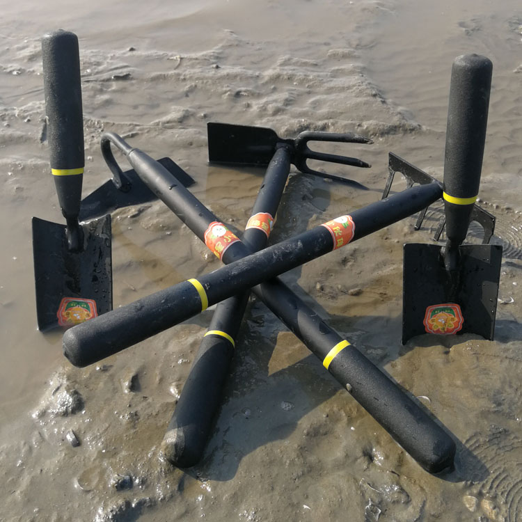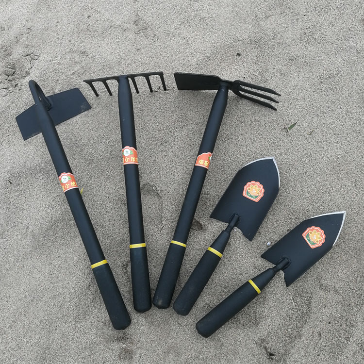Iron handle small pointed shovel Iron handle large pointed shovel Iron handle flat hoe Iron handle rake Iron handle double-sided hoe Five-piece set of small steel pickaxe impact shovel
