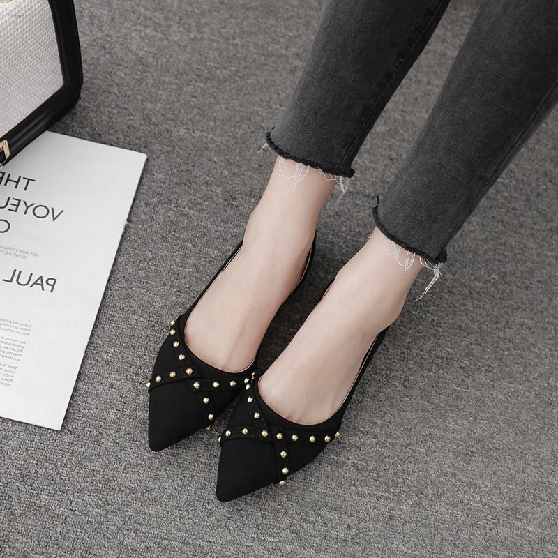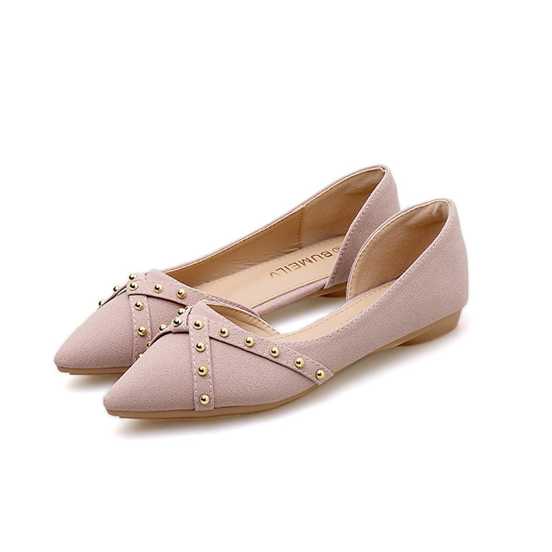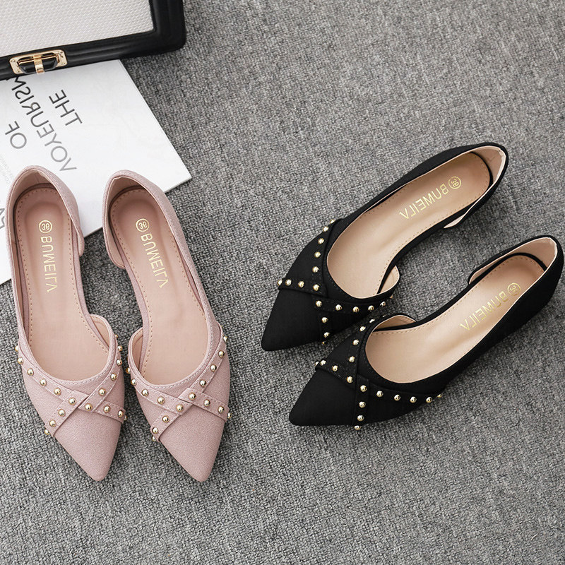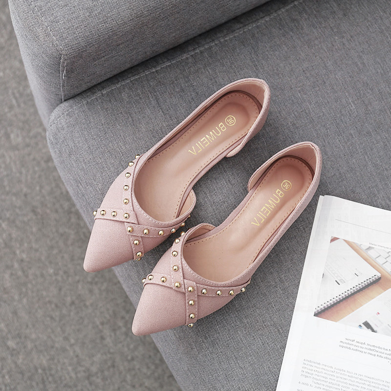 Hong Kong red flat female singles leather 2022 spring shoes with pointed head four seasons shoes shallow evening shoes fairy shoes
