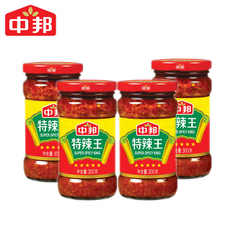 Mid-Bonded spicy king 300g * 4 bottles of chili sauce ultra spicy open to the next meal Spicy Hot Pot Spiced Hot Pot Sauce