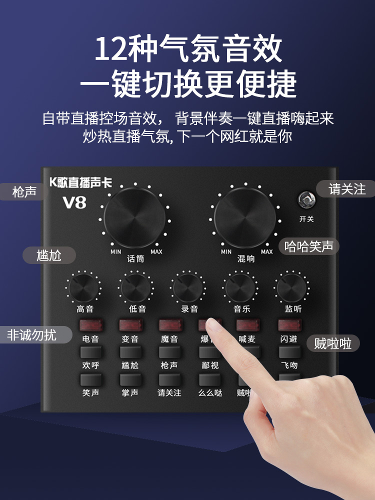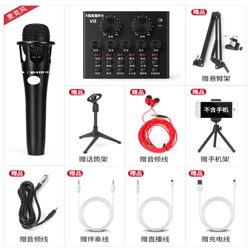 Mobile phone rack live broadcast equipment V8 microphone sound card set singing anchor net red shout wheat accompaniment Taobao trembles national karaoke fast hand multi-special effects Bel canon doll sound Android Apple universal