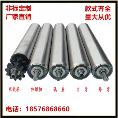 Unpowered spring telescopic roller galvanized stainless steel roller synchronous wheel roller conveyor line Sprocket Power roller