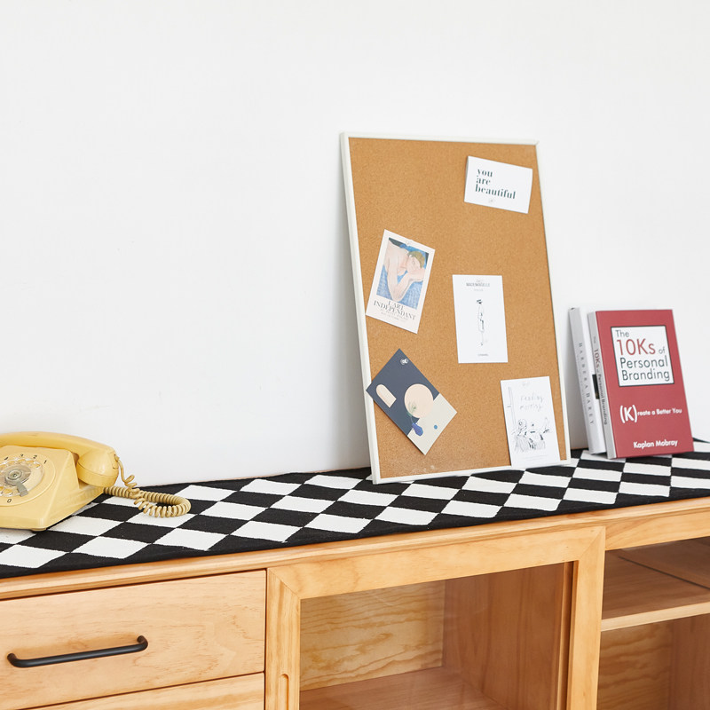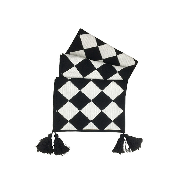 Modern minimalist style TV cabinet table flag long fabric black and white grid tassel edging Coffee table tablecloth dining table insulation mat
