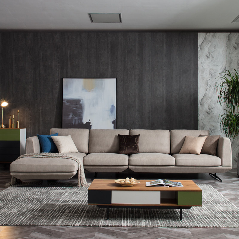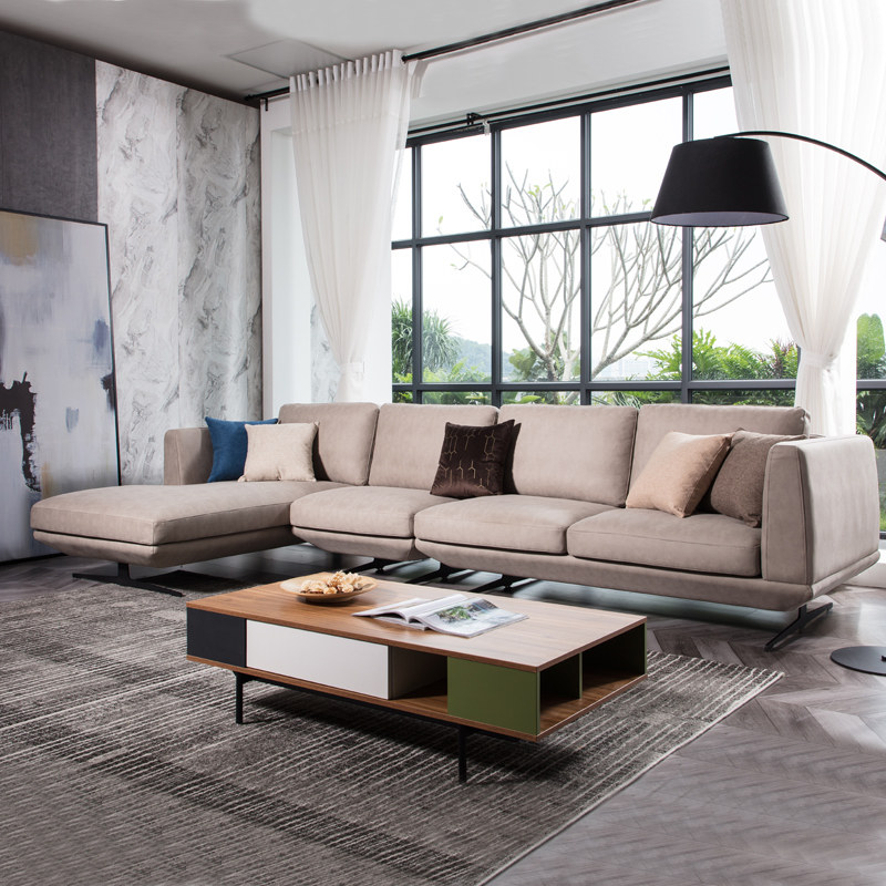 Light luxury Italian sofa small apartment simple modern living room combination L-shaped chaise longue fabric sofa technology cloth disposable