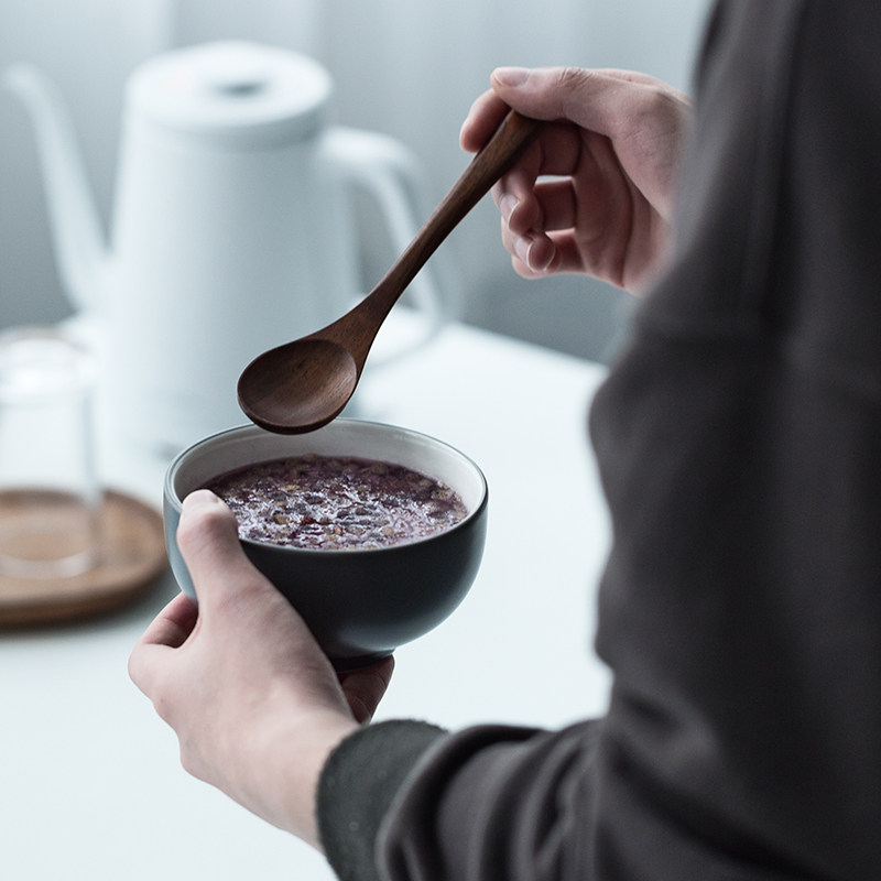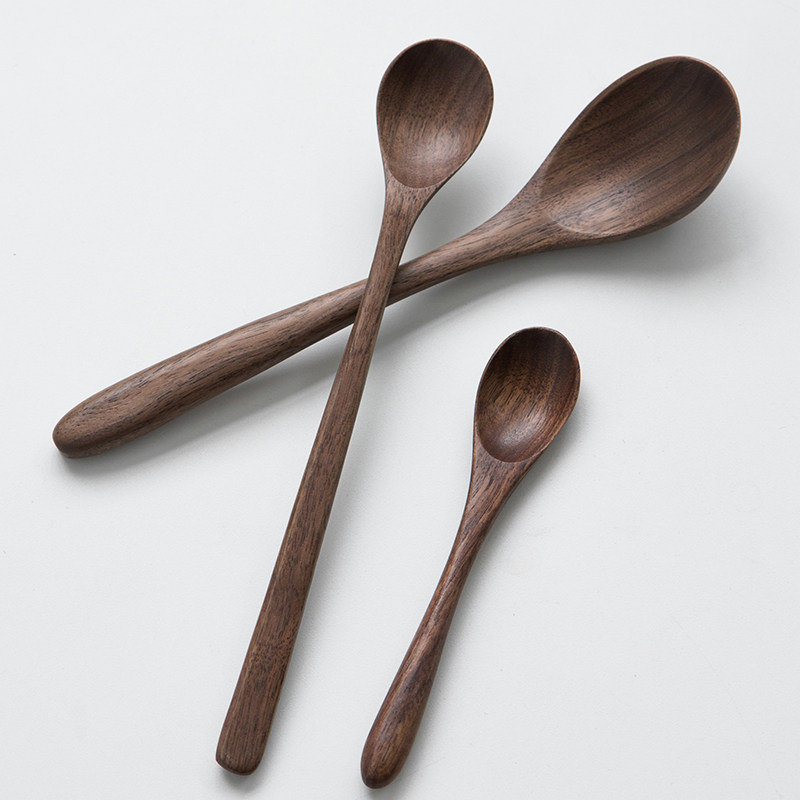 Black walnut wooden spoon Log spoon Household dining wooden long handle spoon Creative Japanese wooden mixing spoon